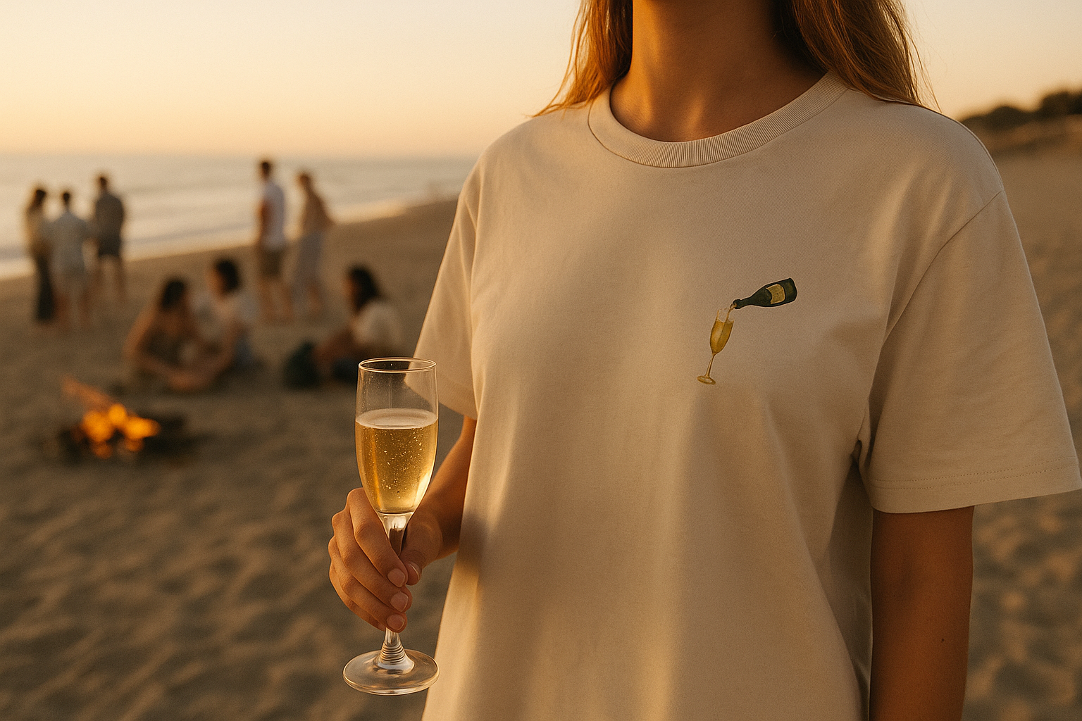 “Bubbles, fun, and style – wear the champagne lifestyle.”